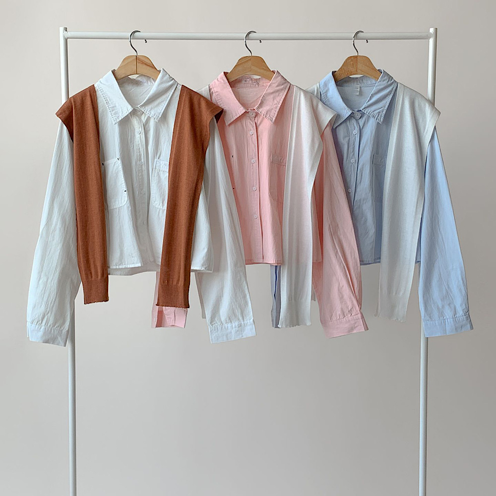 크롭 짧은 이너 봄 여자 소라 핑크 셔츠 남방 캐주얼 여행룩 편한 코디 숄 가디건 세트