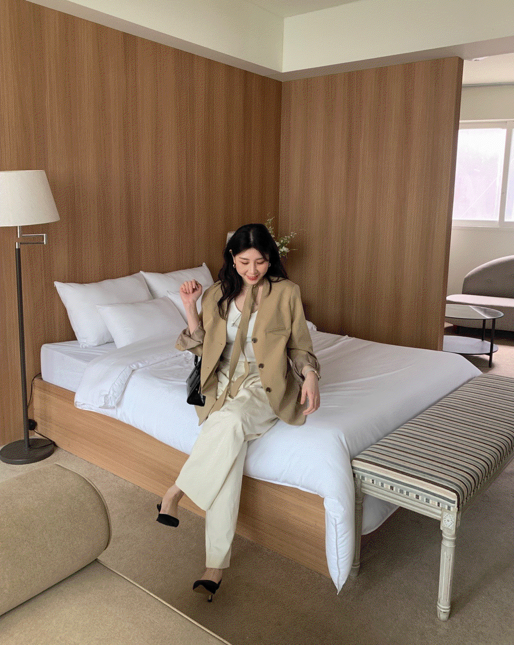 {하객룩 추천} 스카프 타이 노카라 오버핏 자켓(2color)