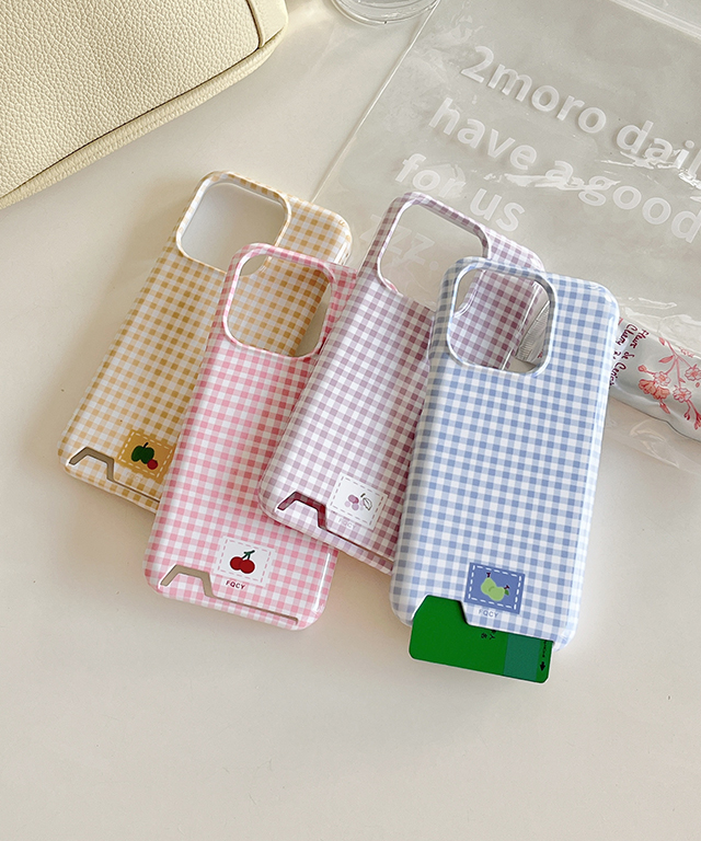 과일 체크 카드수납 아이폰케이스 하드 포켓 지갑 잔체크 봄 커플 핸드폰 케이스 폰케이스 12 13 11 14 15 프로 맥스