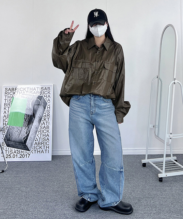 [남녀공용/빅사이즈] 가죽 레더 오버핏 벌룬 오픈 카라 셔츠 남방 롱셔츠