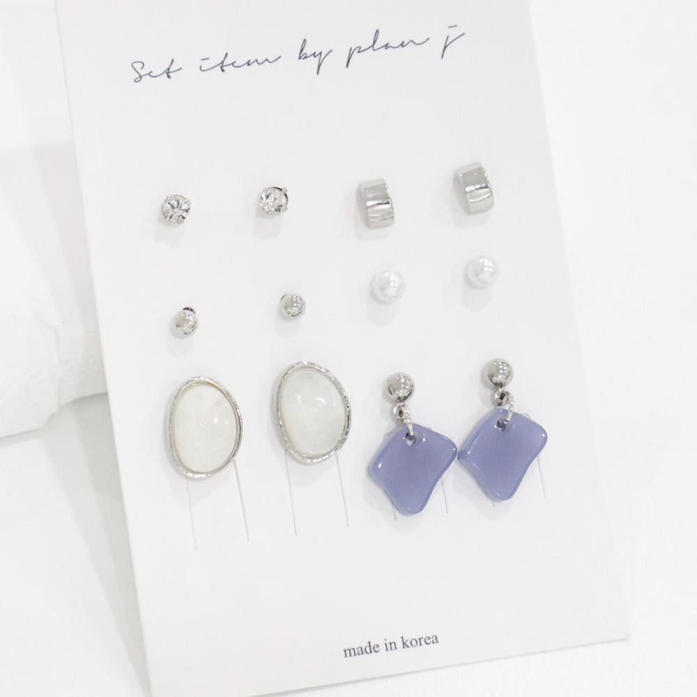 여자 컬러 아크릴 진주 실버 골드 옵션 귀걸이 세트