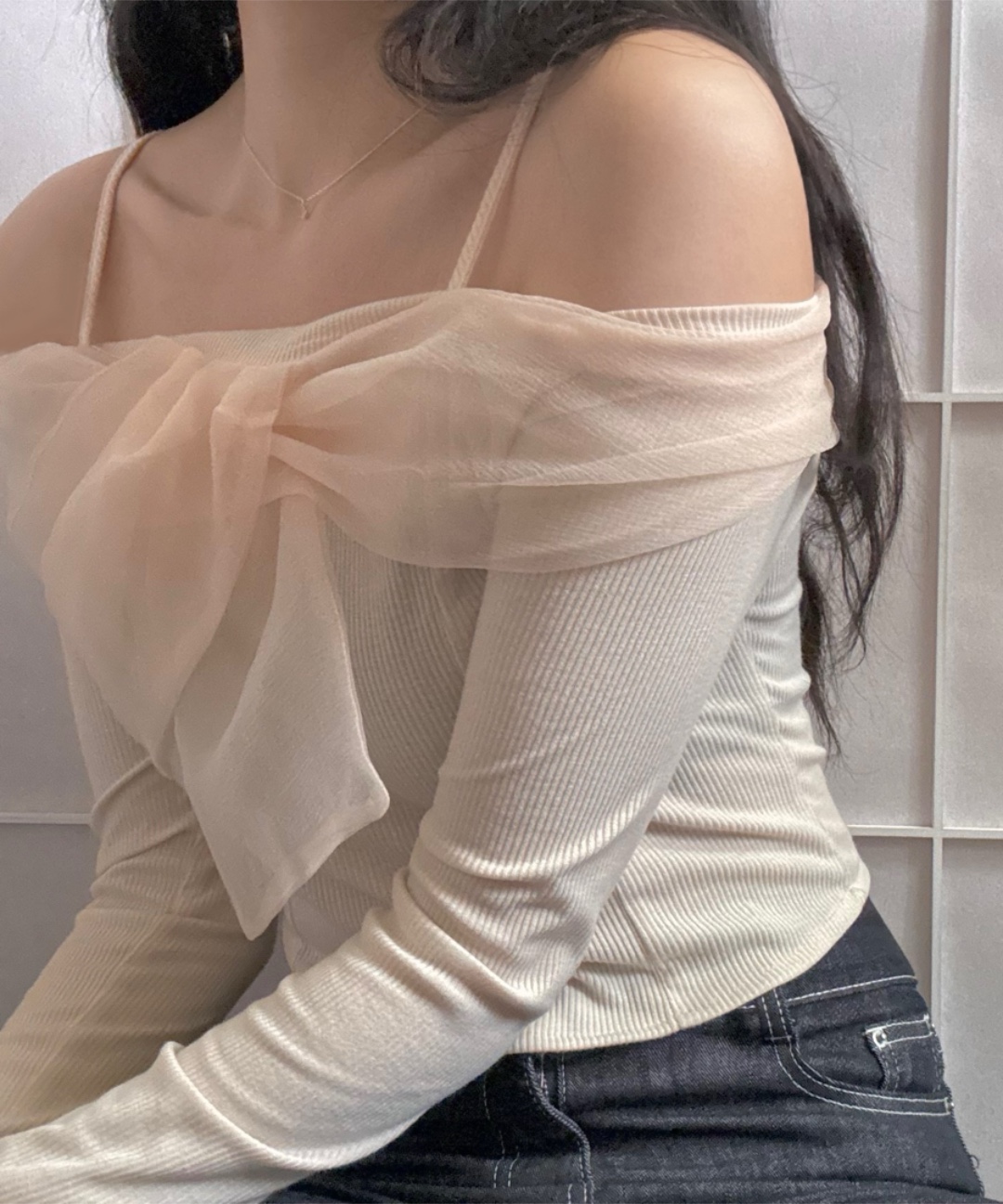 [💗심쿵 남심저격/데이트룩ᨻ] 피치 실루엣 리본 골지 니트 오프숄더 긴팔 - nt / 2color
