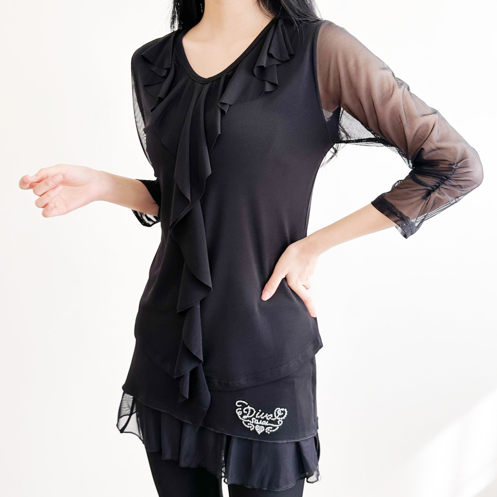 까르죠아 볼륨감 있는 러풀 블라우스 스포츠 댄스복 여성 상의