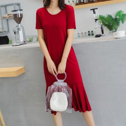 플리츠 포인트 반팔 롱원피스 주름 면 레드 빨간원피스