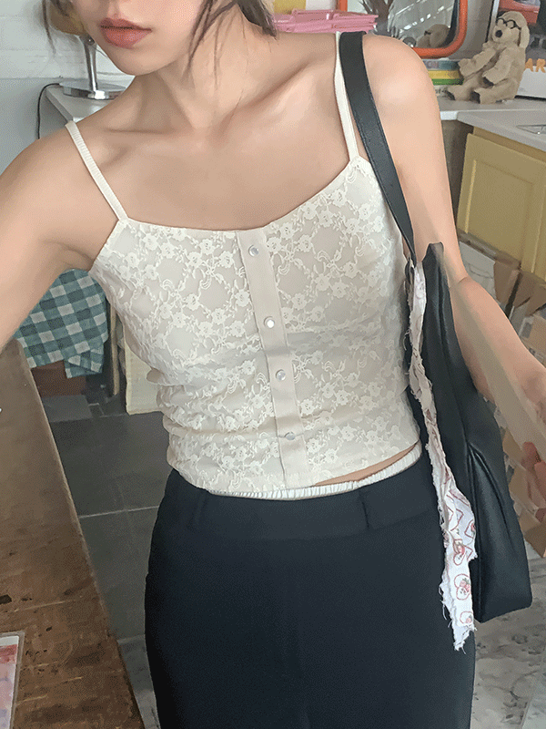 메르씨 버튼 레이스 레이어드 뷔스티에 끈나시