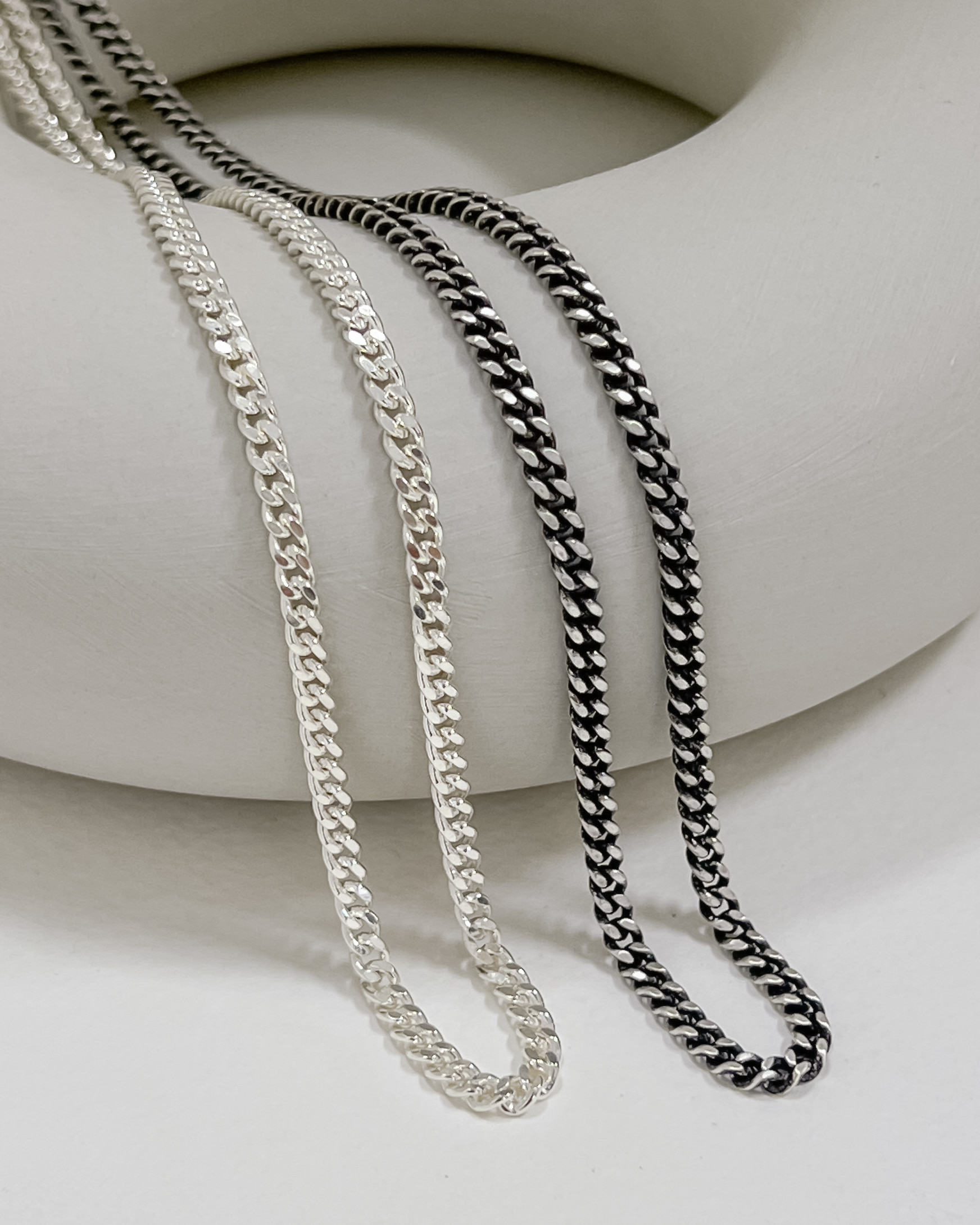 실버925 클래식 심플 납작 체인 볼드 남자 여자 목걸이 F