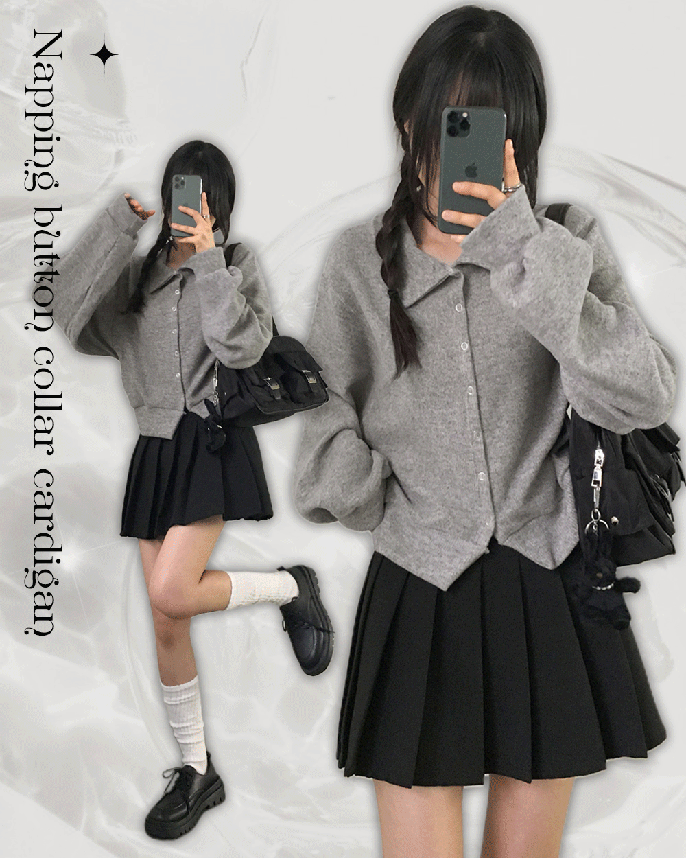 후노 겉기모 벌룬핏 아방 스냅 단추 카라 긴팔 가디건