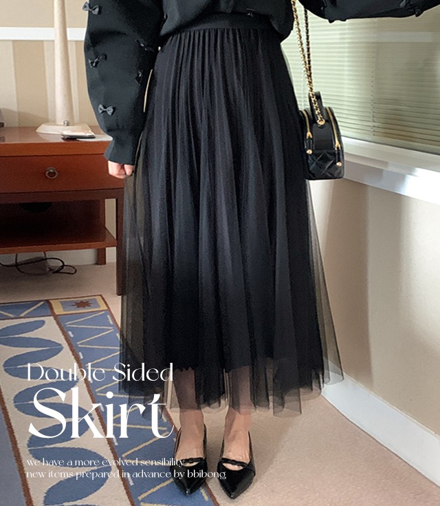 [양면착용🤍]샤샤 플레어 롱 스커트(3color) [치마 긴치마 주름 쉬폰 레이스 플리츠 샤스커트 리버서블 허리밴딩 밴딩치마 레이어드 데일리룩 데이트룩 여친룩 소개팅룩 하객룩 하객치마 캠퍼스룩]