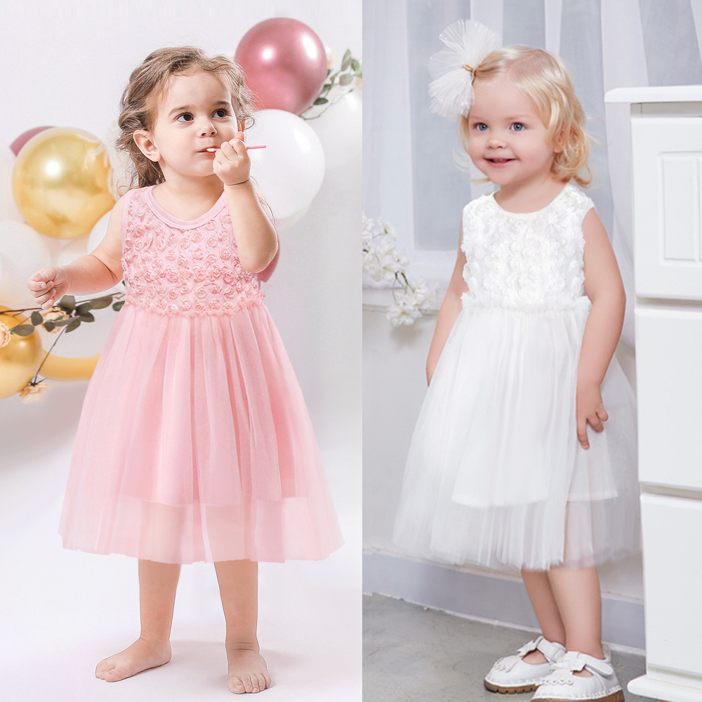 장미꽃 레이스 베이비 민소매 튜튜 원피스 아기옷 여아 돌 드레스 토들러 여름 외출복