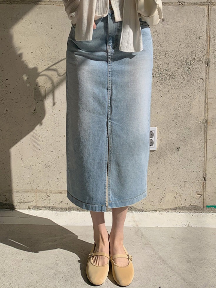 [25-36] 로피브넌 트임 하이웨스트 데님 롱 스커트 ( 봄-가을-여름-벚꽃룩-데일리룩-데이트룩-캠퍼스룩-캐주얼룩-피크닉룩-여행룩-빅사이즈-36사이즈-자체제작-워싱-앞트임-슬릿-러블리-사랑스러운-통통녀 )