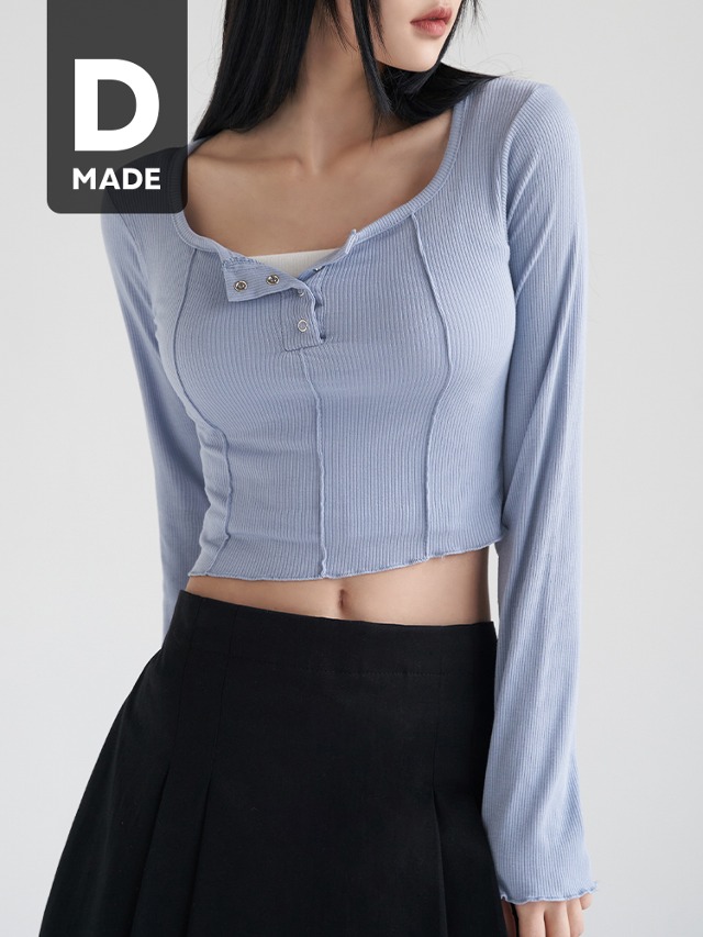 [1천장돌파][MADE] 빅사이즈 55-100 리사 버튼 절개 라인 크롭 긴팔 티셔츠