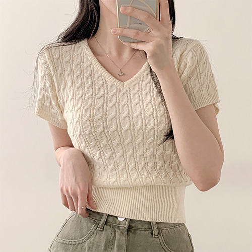[러블리♥/여름니트] 귀여움주의, 소닝 꽈배기 라운드 크롭 반팔 니트 (5color)