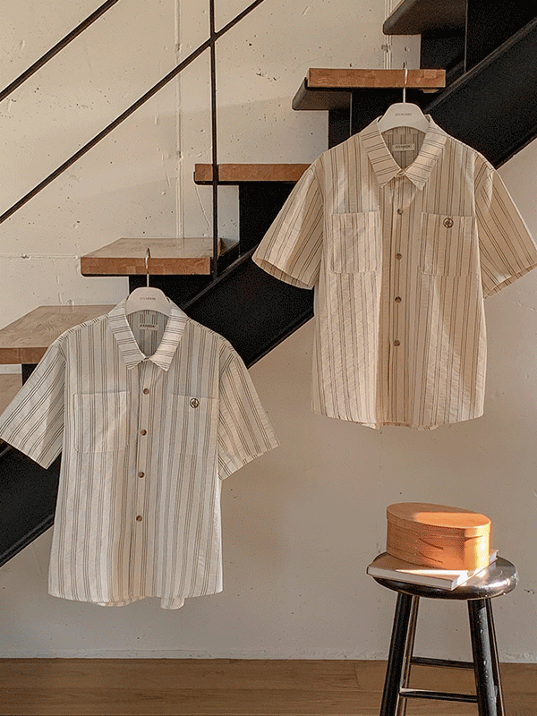 [2천장 돌파] J'eu 올리브 스트라이프 반팔 파자마 잠옷 세트 2color, 2size