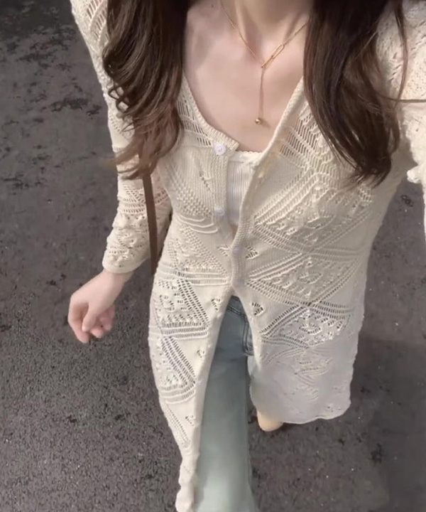 샌드크로셰 레이어드 펀칭가디건
