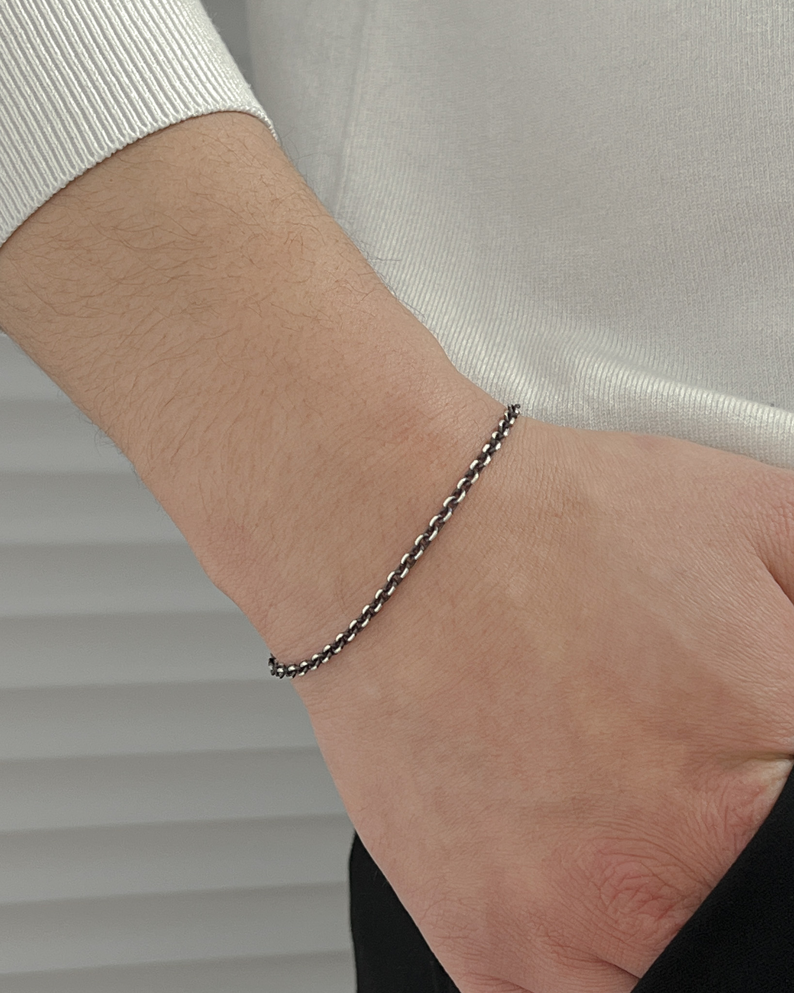 실버925 클래식 심플 라운드 체인 남자 여자 팔찌 B