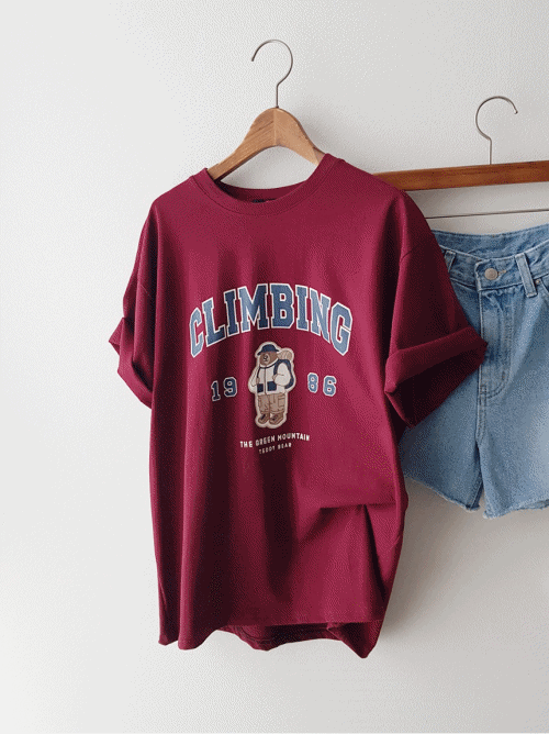 [데일리T] 귀여운 캠퍼 곰돌이 베어 레터링 프린트 루즈핏 톡톡 코튼 면 반팔티셔츠 학생티 박스티셔츠 캐주얼티셔츠 여름반팔티
