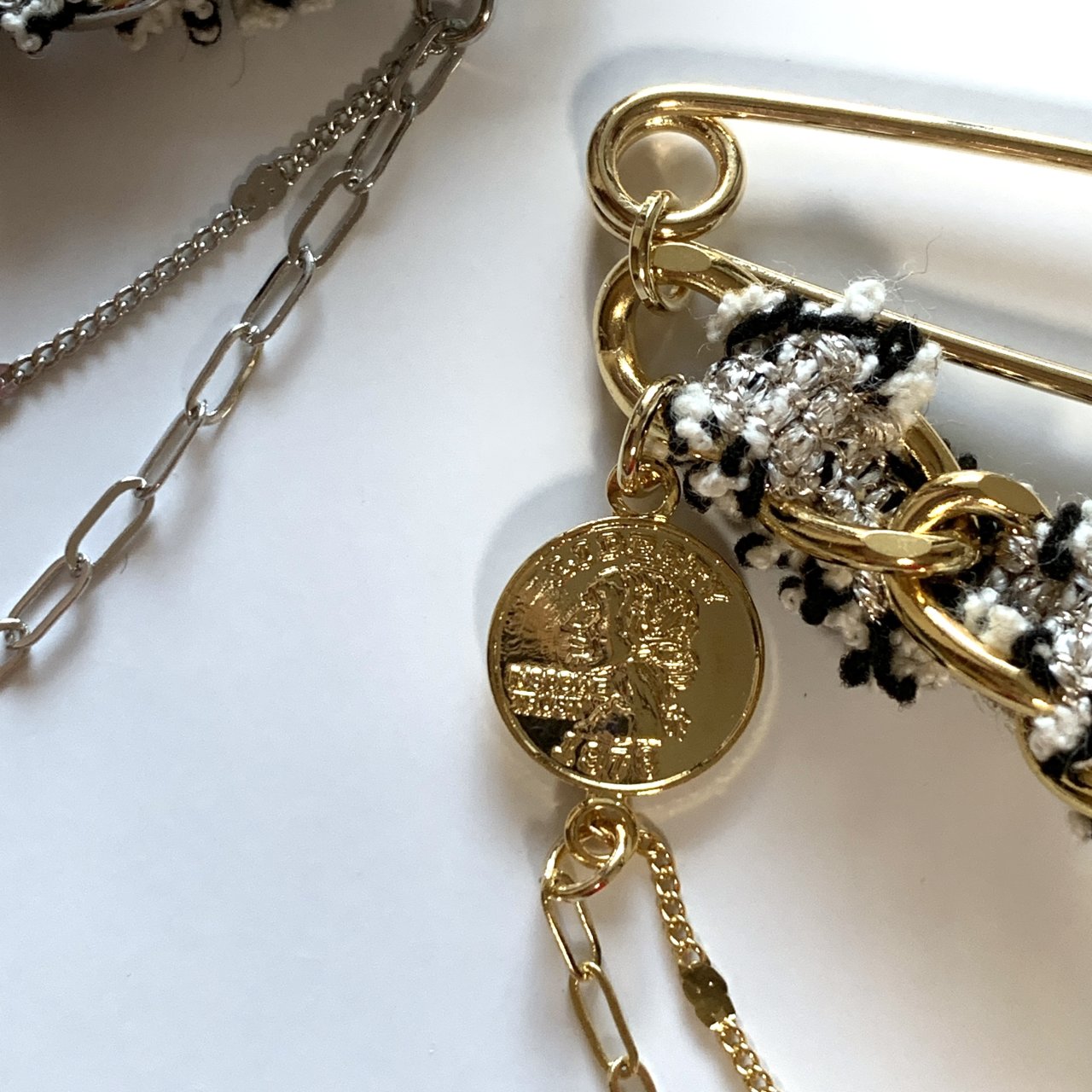 트위드 체인 옷핀 가방 장식 동전 악세사리 코인 금색 골드 실버 원단 친구선물악세사리 우정열쇠고리 우정가방장식 30대여자 브로치