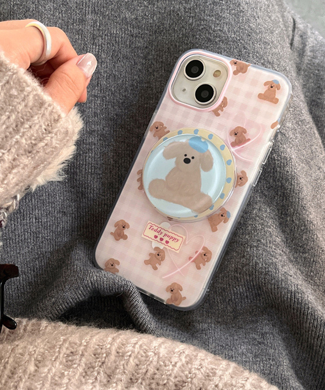 귀여운 아이폰 맥세이프 충전 핑크 모자 강아지 스마트톡 거치대 톡 유니크 심플 키치 우정 핸드폰 휴대폰 애플 폰 케이스 아이폰케이스 12 프로 13 14 15 16 프로맥스