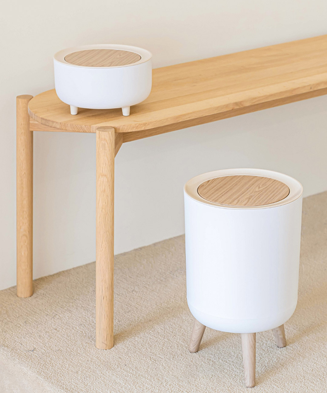 유니미스 미드센추리 인테리어 나무 원형 휴지통