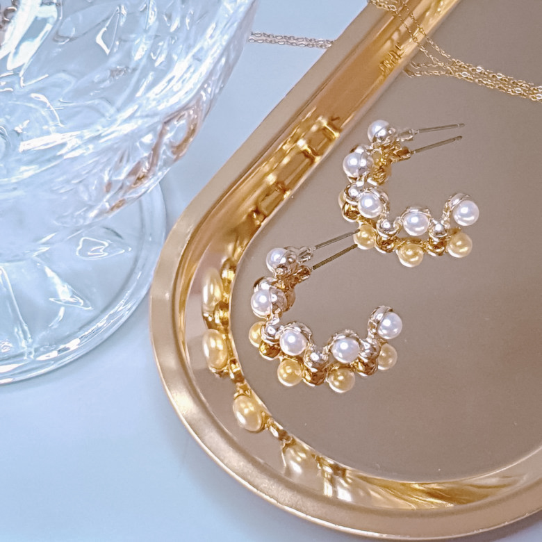 버블 도넛 왕 진주 볼드 골드 후프 링 귀걸이 티타늄침