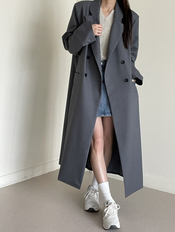 바이 롱자켓 (오버핏 블레이저 프록코트 트렌치 더블 봄신상 고퀼리티) - 차콜, 블랙