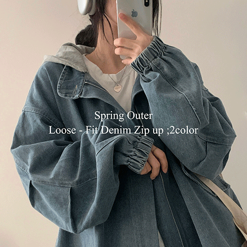 [후드탈부착!/UNISEX] 키미스 데님 루즈핏 박시 후드집업,자켓 - 2color