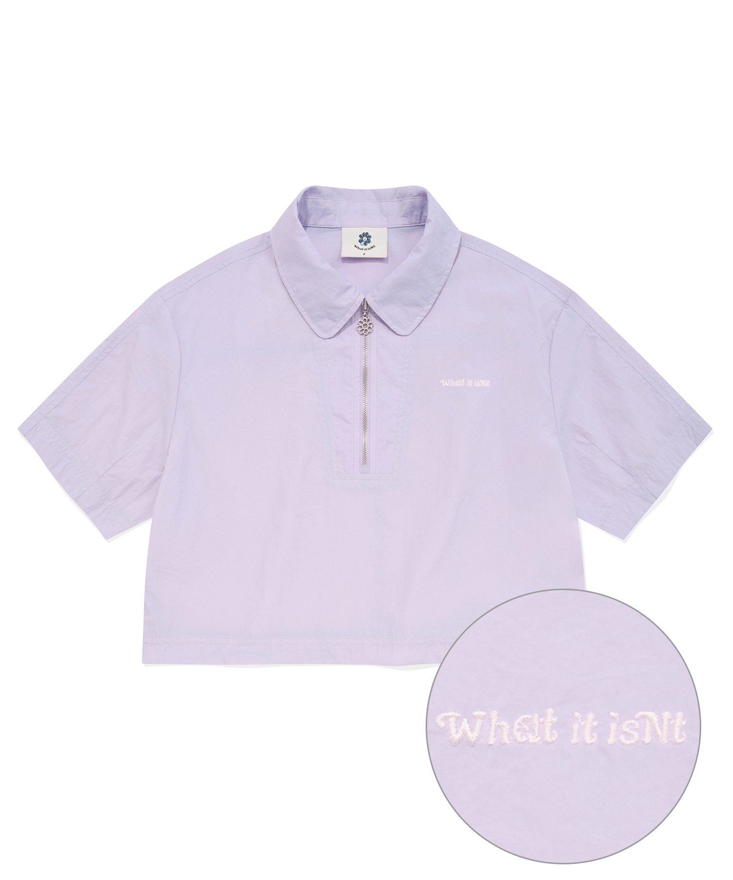 우먼스 나일론 하프집업 반팔 점퍼 라이트 퍼플