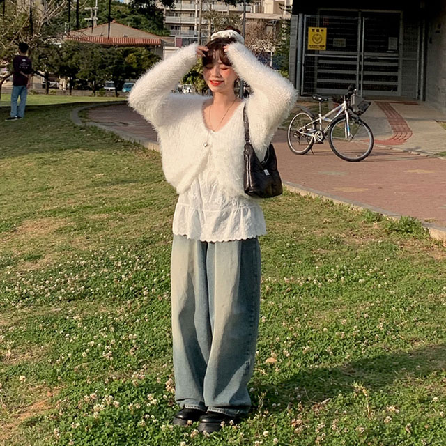 [8컬러/폭닥핏✨] 흘러내리는, 솔잎 보송이 크롭 볼레로 가디건 브이넥 퍼 니트 앙고라 핑크 가디건