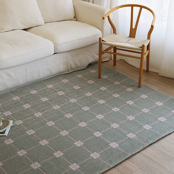 먼지없는 워셔블 나디아 그린 체크 패턴 거실 카페트 러그