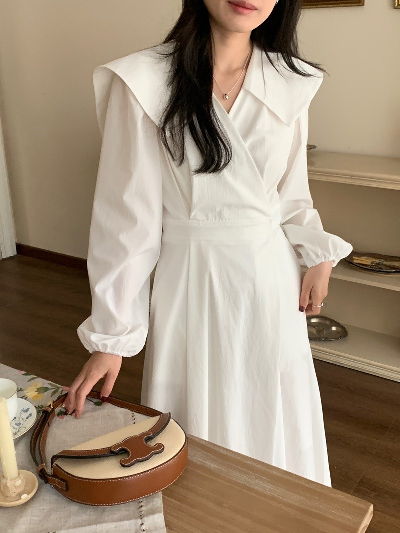 [당일출고] 터키루 하객룩 빅카라 셔츠원피스 봄 가을 블랙 화이트 브라이덜샤워 바스락 롱원피스