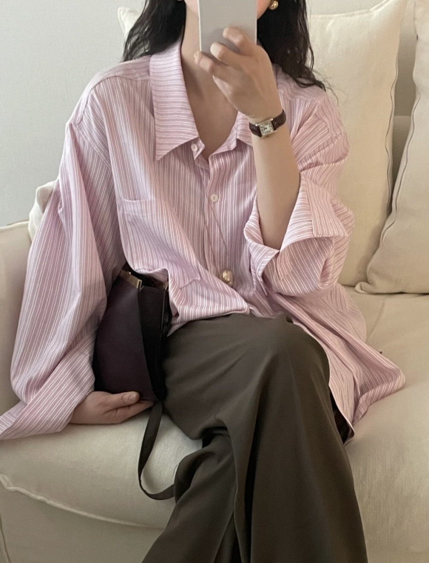 바스켓 히든 스트라이프 오버핏 셔츠(3color)