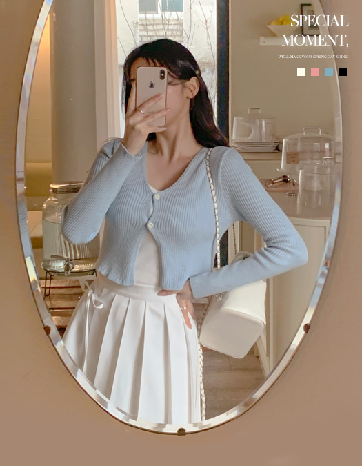 프밍 브이 크롭 가디건 4color [브이넥/골지/봄가디건/여름/간절기/데일리룩/페미닌/러블리/벚꽃/휴가룩/휴양지/데이트]