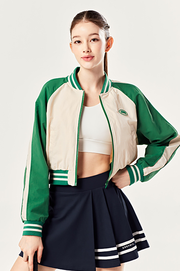 우븐 크롭 바시티 자켓 클로버베이지