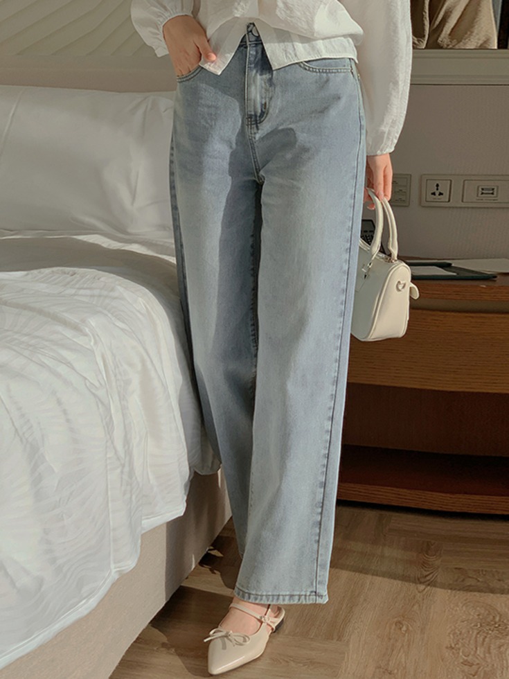 [2천장 돌파✨] [25-34] [숏/기본/롱] 르네이딘 워싱 와이드 데님 팬츠 청바지( 봄-가을-데일리룩-/데이트룩-캐주얼룩-캠퍼스룩-러블리룩-하객룩-격식룩-출근룩-빅사이즈-34사이즈-자체제작-탄탄한-통통녀 )