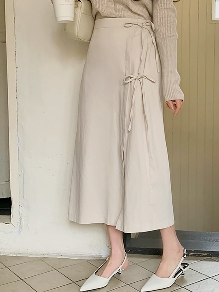 [25-38] 플롯트 코튼 뒷밴딩 리본 랩스타일 롱 스커트 (신상-데일리룩-데이트룩-롱스커트-밴딩스커트-랩스커트-하객룩-격식룩-페미닌룩-뒷밴딩-트임스커트-빅사이즈스커트-자체제작-통통녀-빅사이즈)