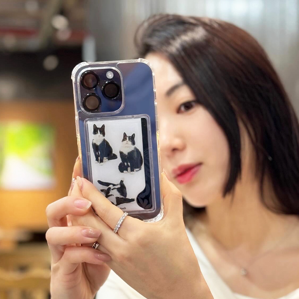 [콜론비] 턱시도 . 투명 범퍼 교통 포토 카드 수납 아이폰 핸드폰 케이스 커플 12 13 미니 14 15 16 프로 맥스 갤럭시 S21 S22 S23 S24 울트라
