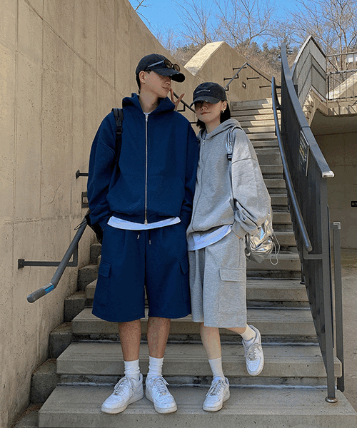 [남여공용] 컬리 후드집업 버뮤다 팬츠 트레이닝 세트 (8 color)