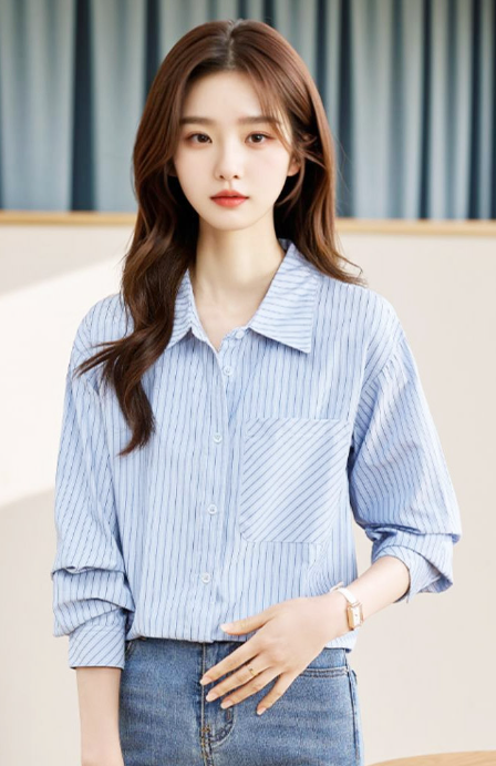 빅카라 소라 긴팔 스트라이프 블라우스 남방셔츠 3270