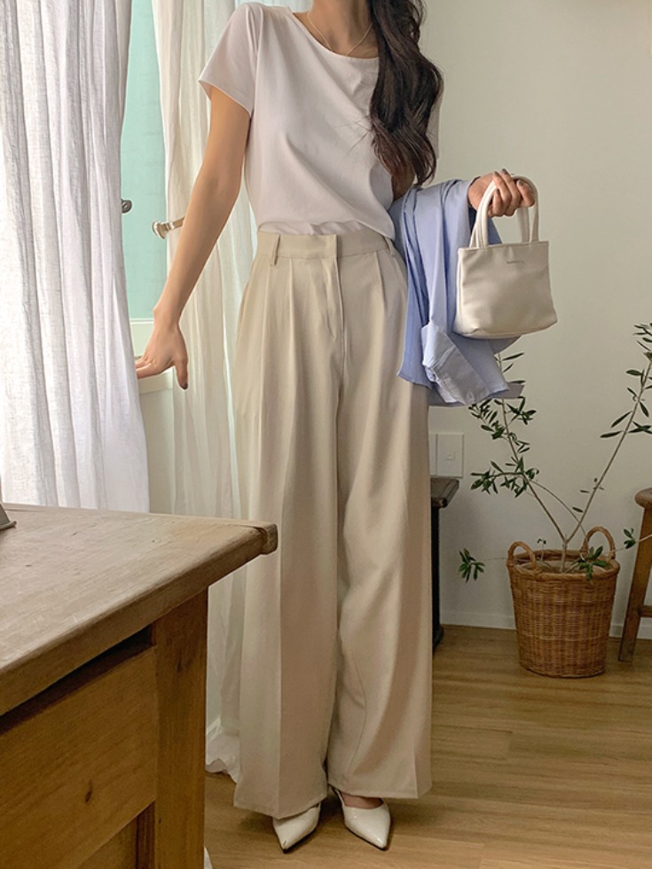 [25-34] [숏-롱] 루밴티브 핀턱 와이드 슬랙스 팬츠 ( 봄-데일리룩-데이트룩-캠퍼스룩-출근룩-격식룩-빅사이즈-34사이즈-자체제작-투핀턱-기본템-체형커버-하체커버-심플한-깔끔한-키작녀-통통녀 )