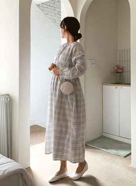 임부복*앞포켓단작체크 임산부원피스(수유가능)