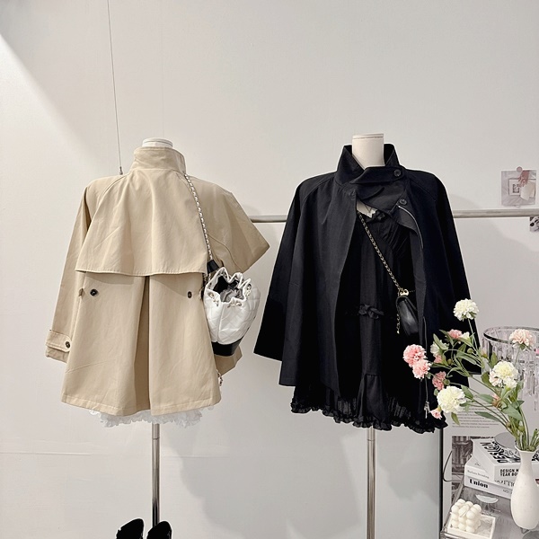 *당일발송* [페미닌!/하객룩!] 겨울 베일리 케이프 트렌치 바바리 오버핏 하이넥 카라 포켓 버튼 벌룬 퍼프 A라인 플레어 긴팔 하프 숏 코트 자켓 야상 점퍼 [3color]