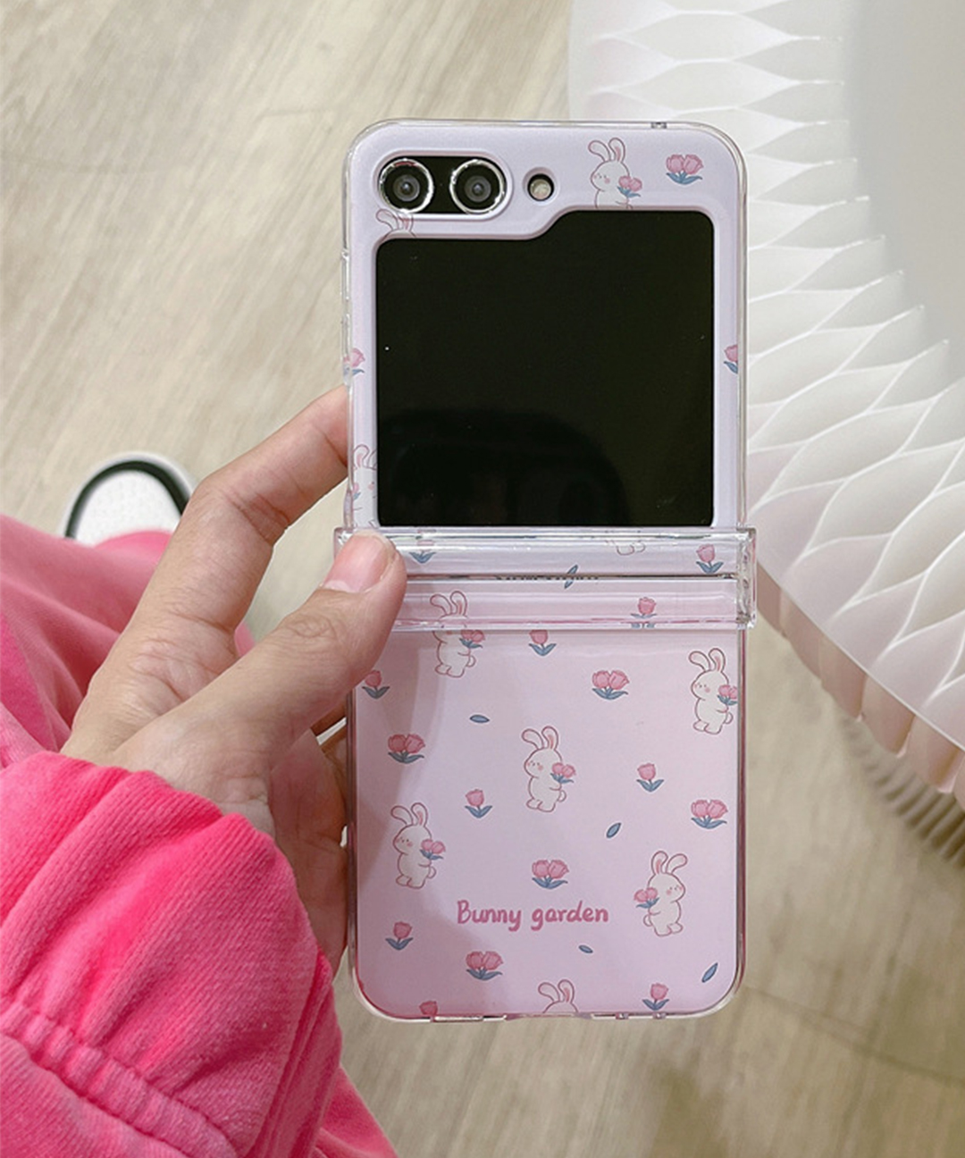 귀여운 삼성 갤럭시 지플립 Z플립 3 4 5 6 7 버니 가든 플라워 핑크 토끼 힌지보호 유니크 키치 지플립7 Z플립5 지플립6 핸드폰 휴대폰 폰 케이스 지플립케이스