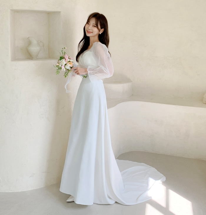 로맨틱 화이트 원피스, 시스루 결혼 셀프웨딩 브라이덜샤워 2부 돌맘 돌잔치 드레스