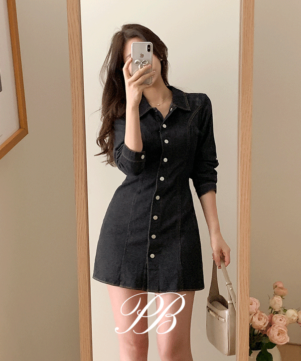 [모델픽][여리잘록핏/데이트룩] 러빈 셔츠라인 데님미니원피스 - 2color