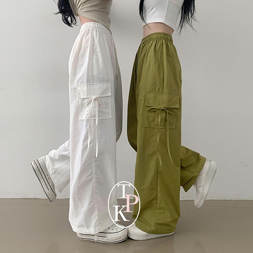 [MADE/제작/조거핏가능/발레코어/y2k] 더핀 밴딩 하이웨스트 바스락 리본 카고 와이드 팬츠 (5color)