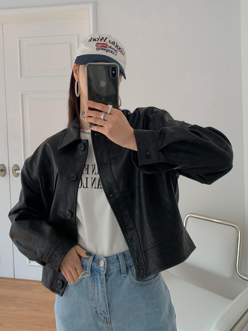 여성가죽자켓 레더 라이더 카라 숏 크롭 봄 여성 자켓