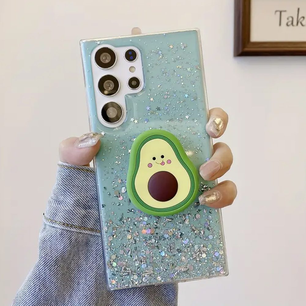 갤럭시 A54 퀀텀4 A34 아보카도 스마트톡 핸드 그립 거치대 에머랄드 펄 반짝이 젤리 핸드폰 케이스