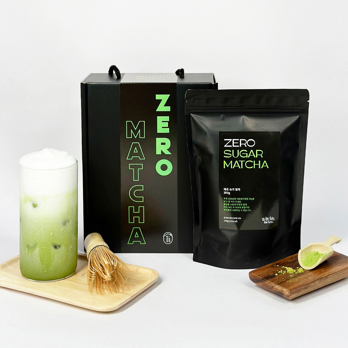 마녀의부엌 프리미엄 보성 제로 슈가 말차 300g 선물세트 그린티 라떼 말차 가루