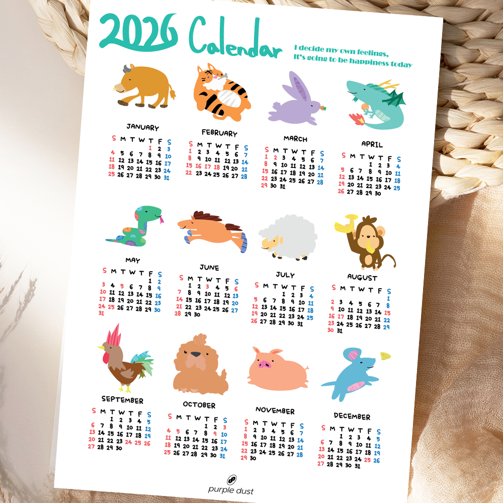 한장달력 12간지 2026년 낱장 포스터 1년 연력 캘린더