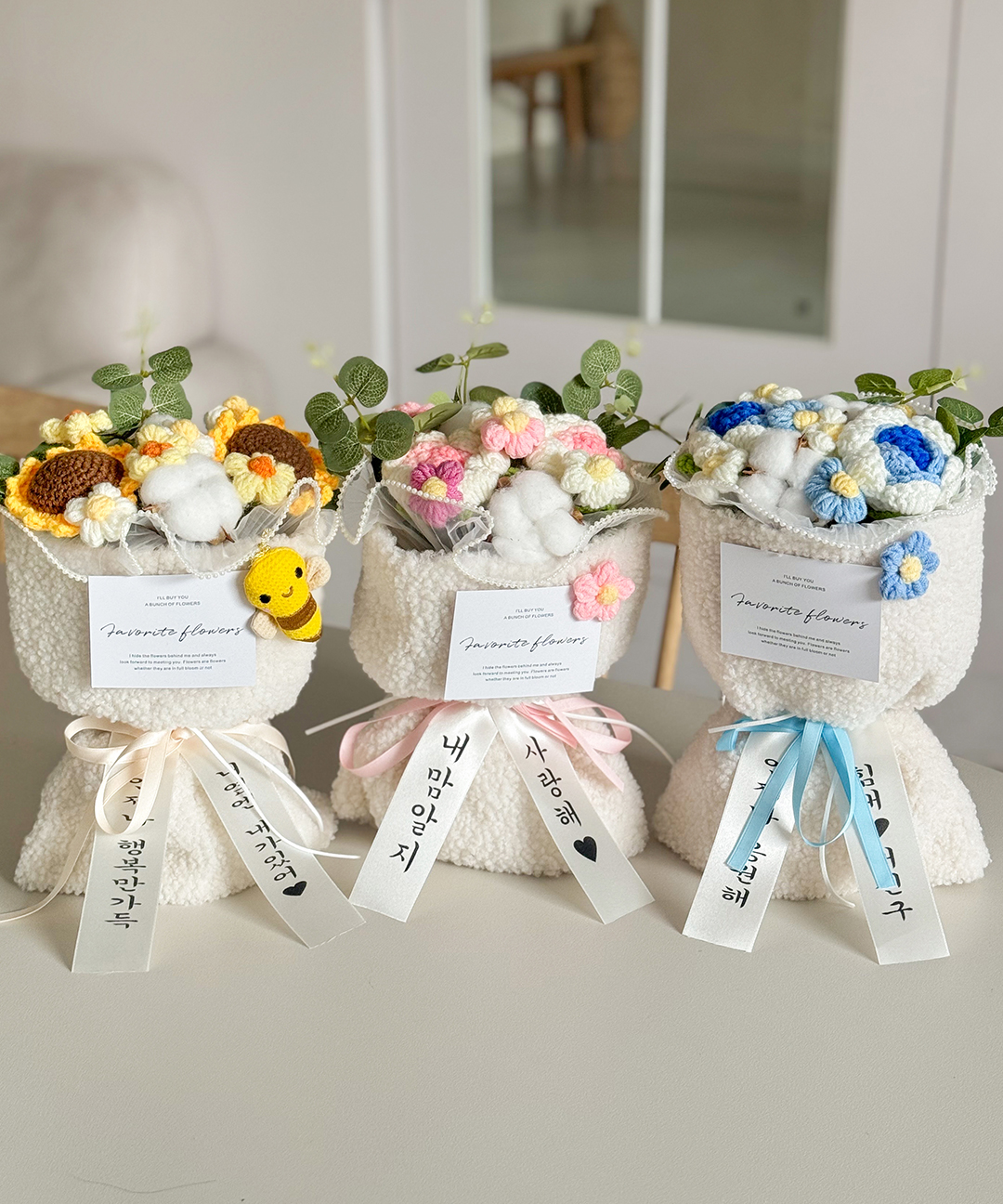 [무료배송/3종set] 커스텀 리본 꽃다발+쇼핑백+화환문구 3colors 스승의날 어버이날 생신 기념일 선물세트
